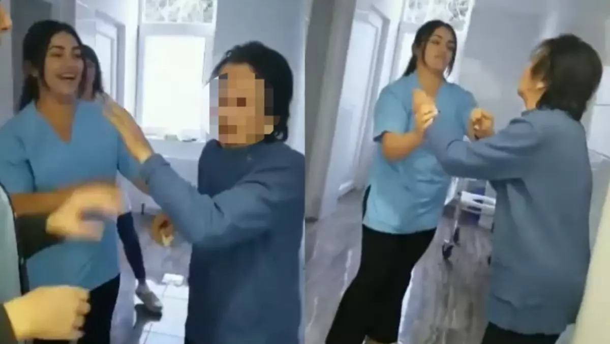 Nas imagens é possível ver a enfermeira dando tapas no rosto da idosa e depois segurando os braços da paciente. Uma das pessoas que estava presente no local deu risada da situação enquanto outra pessoa filmava as agressões.