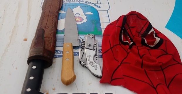 Policiais acharam um facão, um canivete e uma máscara na mochilha do adolescente, que foi encaminhado para um hospital em Esperantina e medicado.