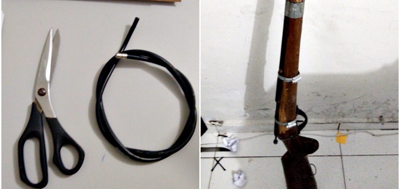 De acordo com informações da PM, as duas filhas conseguiram escapar do acusado e procurar ajuda. Com Romão foram encontrados uma espingarda bate bucha, uma tesoura em sua cintura e cabo de aço de embreagem de moto.