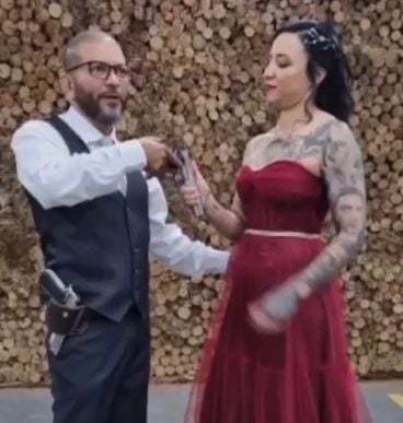 Dilma compartilhou nas redes sociais fotos com amigos. “Hoje foi o dia da prévia do casamento no estande do casal”, comemorou um internauta, dando a entender que ela é noiva do proprietário de um estande de tiros. No seu perfil no Instagram, a “dama de vermelho” tem fotos segurando diversas armas e vídeos com fuzis e pistolas.